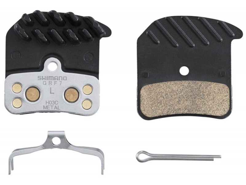 Brzdové destičky SHIMANO H03C-MFA metal, s chladiči čtyřpístkové, v krabičce