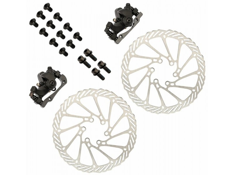 Sada mechanických kotoučových brzd s kotoučema 160mm v sadě se šroubky i adaptéry PM-IS-R160 a PM-IS-F160