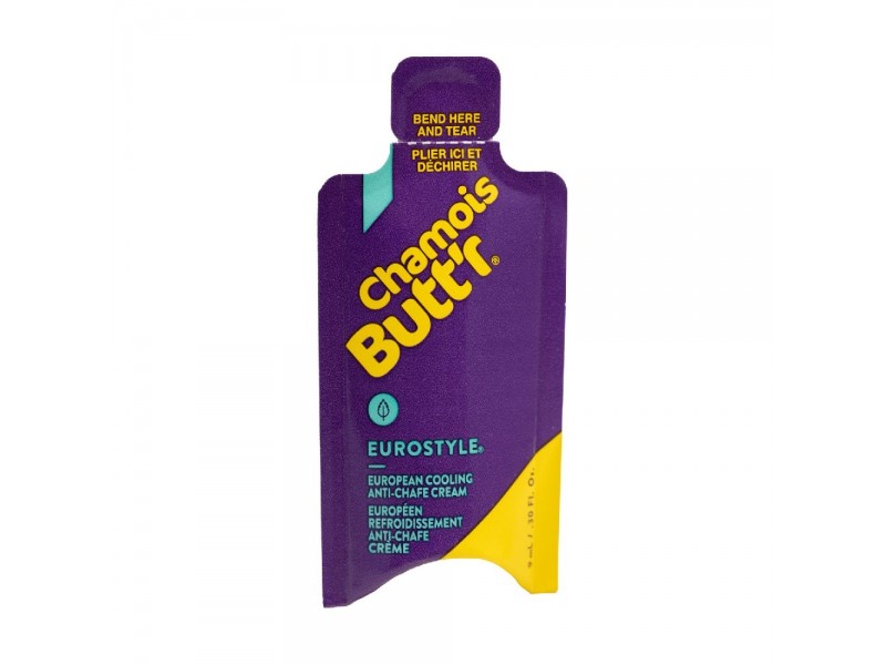 Krém proti oděrkám Chamois Butt'r Eurostyle byl speciálně vyvinut s obsahem mentolu a hamamelu, aby poskytoval chladivý a zklidňující účinek pro cyklisty, kteří upřednostňují tradiční evropský krém na sedací partie. Vlastnosti: nezanechává mastné zbytky okamžitě zlepšuje komfort zklidňuje již podrážděnou pokožku snadno se vymývá z oblečení i z pokožky nepoškodí ani nezabarví technické oblečení bez parabenů, ftalátů, lepku a umělých vůní Složení: Voda, minerální olej, glycerylstearát, cetearylalkohol, kyselina stearová, glycerin, lanolin, PEG-100 stearát, diazolidinylmočovina, jodpropynylbutylkarbamát, cetylhydroxyethylcelulóza, sorban draselný, dinatrium EDTA, šťáva z listů aloe vera (Aloe barbadensis), tokoferol, kukuřičný olej (Zea mays), retinylpalmitát, extrakt z vilínu virginského (Hamamelis virginiana), mentol, extrakt z plodů Schinus molle a CI 75120 (anato).