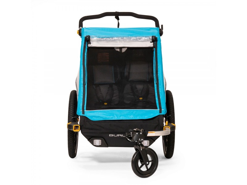 D'Lite X je top modelom americkej značky Burley, ktorá sa už od roku 1978 venuje výrobe detských vozíkov. Tento luxusný multi športový kočiar pre dve deti ponúka svojim pasažierom takú mieru komfortu, ktorú len ťažko nájdete v inom vozíku. Obe sedačky sú samostatne sklonovo nastaviteľné, takže jedno dieťa môže byť hore a pozerať sa pohodlne do okolia, zatiaľ čo druhé spokojne spí v poloľahu. Sedadlá sú bohato polstrované a dostatok priestoru zaisťuje rozšíenie v ramenách. Vnútorný priestor je tak pri zachovaní šírky 80 cm (nutný priechod cez väčšinu dverí) najväčší, aký deťom môžete dopriať. Samozrejmosťou je nastaviteľné odpruženie.