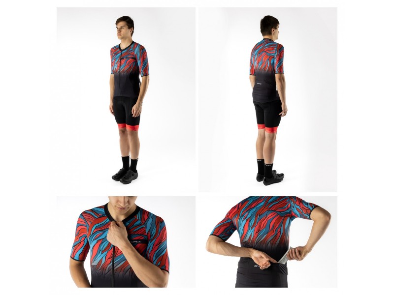 Dres F LIFE krátky rukáv, čierno-petrolej-červený XL