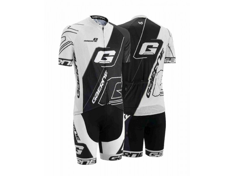 Pánsky cyklistický dres Gaernecelorozopínací zipsrukávy bez lemovtri kapsy na chrbtefarba bielo/čierny
