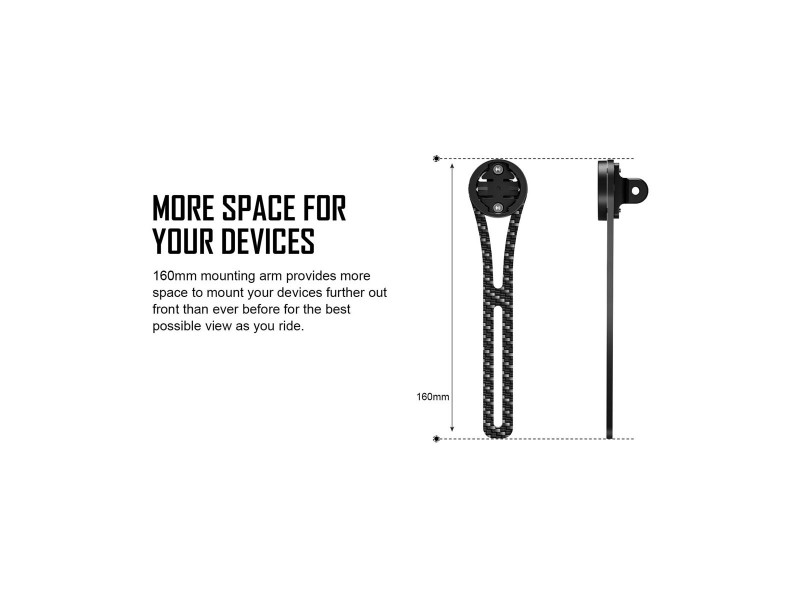 Carbonový držák computeru Garmin (Wahoo, Bryton, Giant - modely viz další obrázek) a světla s úchytem GoPro pro Combo řidítka materiál carbon + plastová vložka na uchycení computeru + Al držák světla se systémem GoPro hmotnost: 23,5g