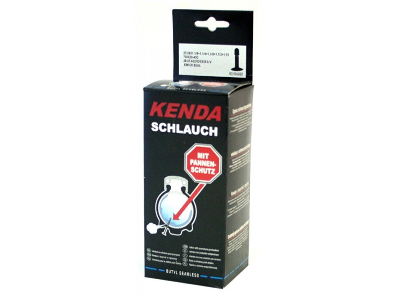Kvalitná veloduša KENDA, zabalená v krabičke, k zakúpeniu so všetkými druhmi ventilov. Tmel na opravu duší súčasťou balenia.