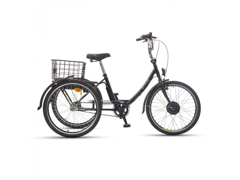 Vybavenie: predná a zadná brzda, osvetlenie, 1-rýchlostný prevod, motor 36V/250W v prednom kolese, batéria Li-Ion 36V/10,4 Ah.