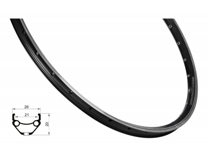 28" dvojstenný plášťový inovatívny dizajn, vhodný pre MTB a trekingové bicykle zaručuje dlhšiu životnosť a vysokú spoľahlivosť 32 otvorov, pre V-brzdy, brúsená strana, jeden nit ERD (efektívny priemer ráfika): 597,6 mm otvor pre ventilček: 8,5 mm výška ráfika: 20 mm materiál: Al hliník, čierny elox Hmotnosť: 536 g