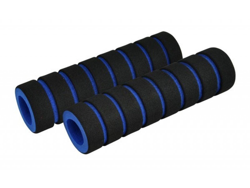 38223,pěnové gripy s obvodovými proužky,délka 125mm,průměr 35mm,černo/modré