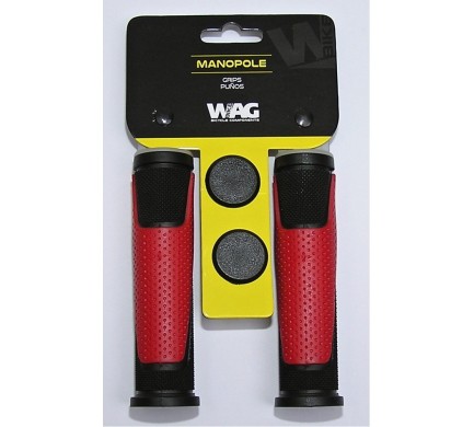 Gumové gripy, dva materiály, pre riadidlá priemer 22 mm, priemer pre úchop 30 mm, dĺžka 125 mm, farba čierna/červená.