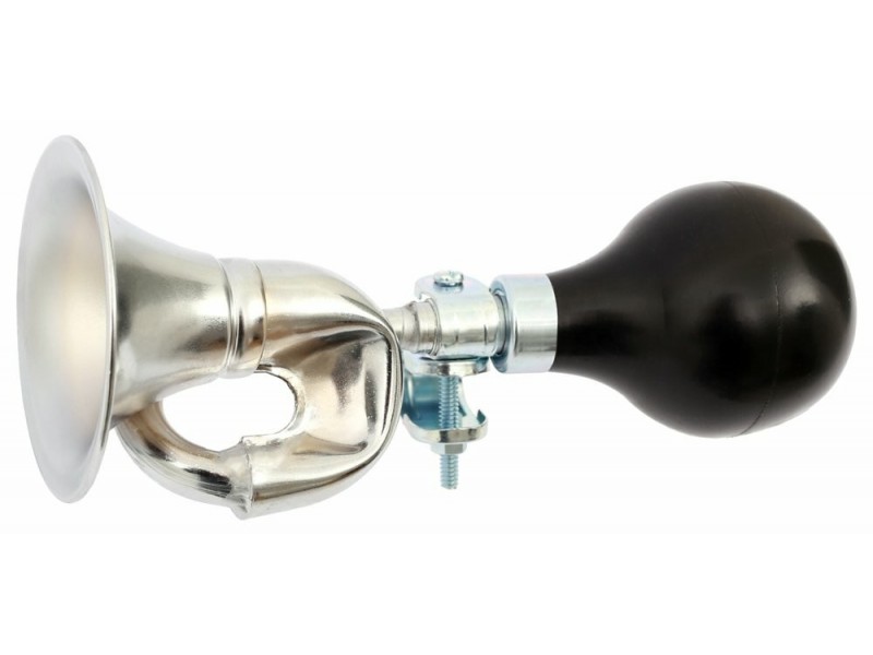 Kovová húkačka pre montáž na riadidlá, model poštová trumpeta.