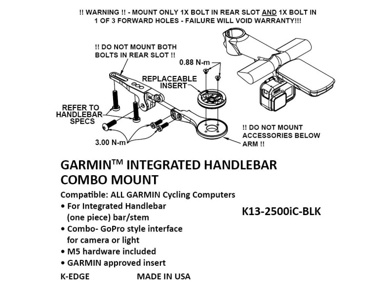 Najnovšia generácia nastaviteľného držiaku pre Combo riadidlá (integrované riadidlá s predstavcom) pre modely Garmin Edge 20, 25, 200, 500, 510, 520, 530, 800, 810, 820, a 1030, ktorý ponúka viac štýlového dizajnu pre uchytenie vášho počítača Garmin, ďalej ponúka možnosť uchytenia svetla alebo akčnej kamery s rozhraním GoPro.