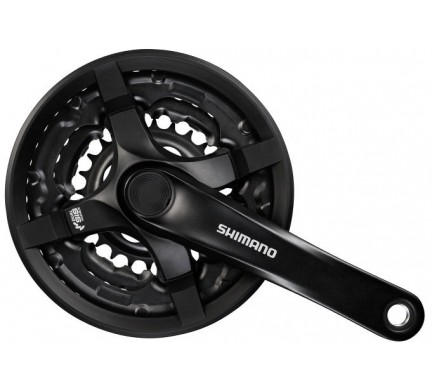 Kliky MTB Al s ocelovými převodníky, délka 170 mm, převodníky 42/34/24, černé s krytem, vhodné pro 6/7/8 rychlostí