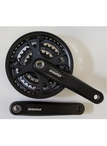 Trojprevodník s krytom pre 6/7 kolečko, nitovanýoceľové prevodníky 48/38/28,plastový kryt,dĺžka kľúk..