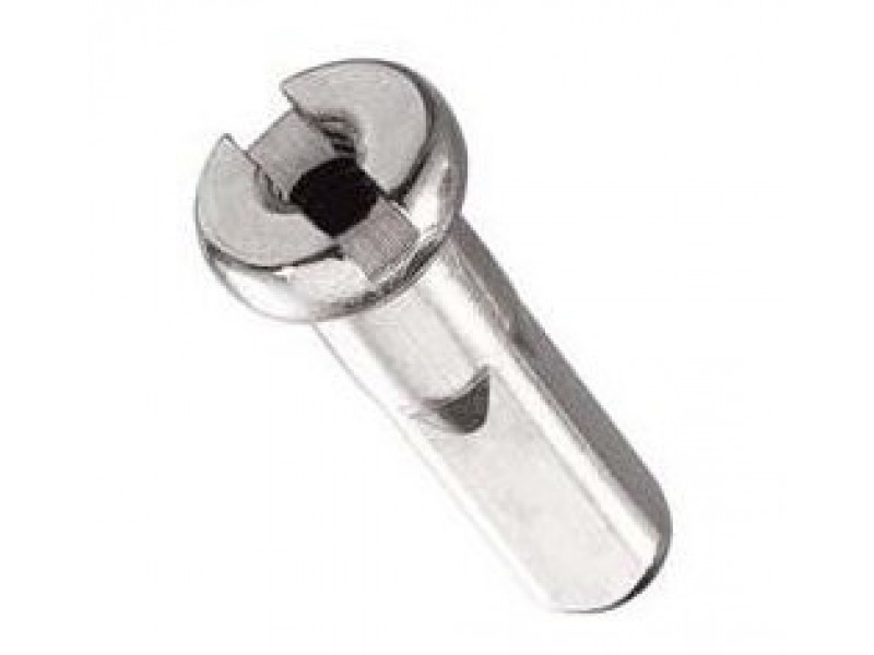 Kvalitný a osvedčený nipl MACH1 pre dielenské použitie na výplety dvojstenných ráfikov a výplety elektro kolies, niklovaný závit 2,6 mm