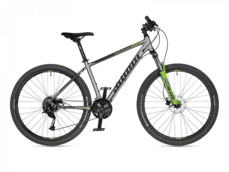 Horský bicykel Author Solution 27,5 predstavuje zlatý stred v ponuke pánskych modelov s 27,5" kolesami. Disponuje duralovým rámom a uzamykateľnou odpruženou vidlicou RST. O radenie sa postará spoľahlivá sada Shimano Alivio s tradičným a dlhodobo osvedčeným počtom prevodov 3 x 9. Brzdí sa samozrejme hydraulikou v podaní spoľahlivých kotúčových bŕzd Tektro. Výhodou u týchto modelov je aj možnosť montáže blatníkov či nosiča. Nechýba ani príprava zadnej stavby na uchytenie originálneho stojanu Author. Vďaka veľkej univerzálnosti si nájde svojich priaznivcov u širokej masy zákazníkov. Pokiaľ hľadáte robustný a solídne vybavený bicykel na rekreačné využitie, Author Solution 27,5 bude maximálne vyhovovať.