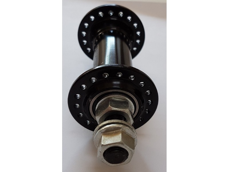 AL přední náboj, ložiskový 36 děr pevná osa průměr 9,5mm, délka 140mm rozteč vidlice 100mm barva černá