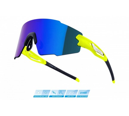 okuliare bez rámčeka pevnejšie a pružnejšie polykarbonátové sklo s grilamidovými nožičkami (TR90), UV 400 filter kategórie 3, priepustnosť 11 % H2FOBIC - hydrofóbna úprava, zvyšuje odpudzovanie vody a nečistôt, ANTI-FOG + ANTI-SCRATCH - úprava proti zahmlievaniu a poškriabaniu okuliarov s vloženým modrým zrkadlovým sklom je možné zakúpiť dioptrický klip (91156) 2 ks samolepiacich krytov, vrecko z mikrovlákna zabalené v pevnom puzdre s hmotnosťou: 33 g