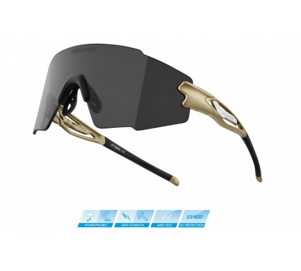 sklá bez rámčeka pevnejšie a pružnejšie polykarbonátové sklo s grilamidovými nožičkami (TR90), UV 400 filter kategórie 3, priepustnosť 11 % H2FOBIC - hydrofóbna úprava, zvyšuje odpudzovanie vody a nečistôt, ANTI-FOG + ANTI-SCRATCH - úprava proti zahmlievaniu a poškriabaniu okuliarovs vloženým čiernym zrkadlovým sklom je možné zakúpiť dioptrický klip (91156) 2 ks samolepiacich krytov, vrecko z mikrovlákna zabalené v pevnom puzdre s hmotnosťou: 33 g