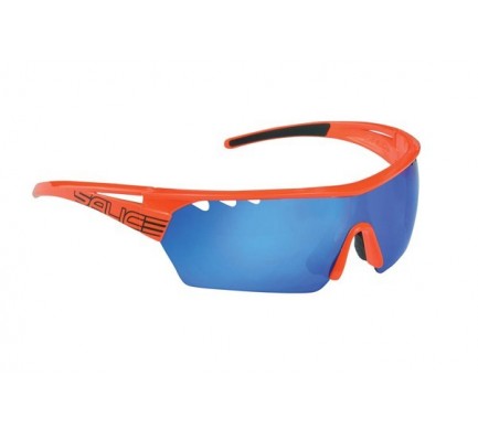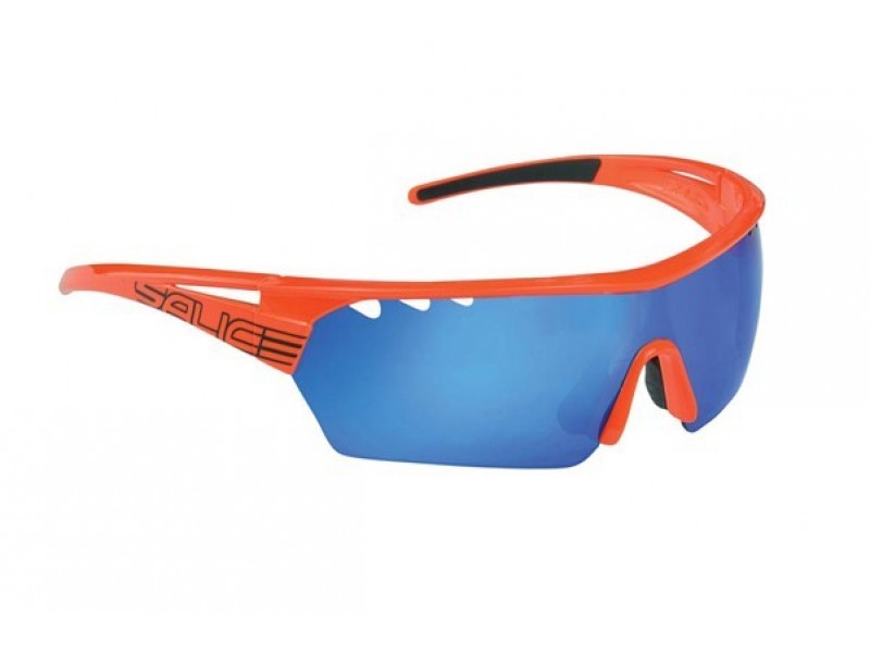 Svietivo oranžový rámček s modrými zrkadlovými sklami, druhé sklá v balení sú číre.