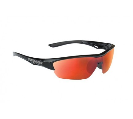 Okuliare majú čierny rámček s červenými sklami, druhé sklá v balení sú oranžové.