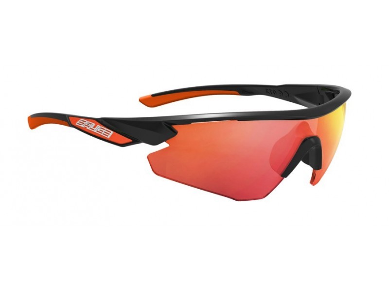 Okuliare majú čierny rámček s červenými zrkadlovými sklami, druhé sklá v balení číre.