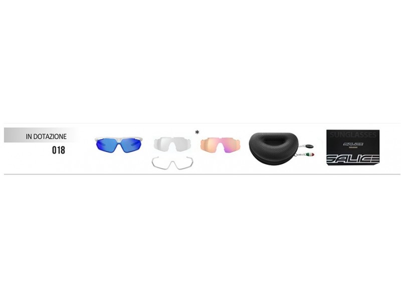 Nový model okuliarov pre rok 2018, okuliare majú biely rámček, spodný modrý diel rámčeka je odnímateľný, takže okuliare môžete mať buď s celoobvodovým rámčekom alebo bez spodnej časti v prípade, že by vám to nevyhovovalo. U tohto modelu je v balení navyše spodný diel v bielej farbe, takže máte možnosť mať okuliare 3 v 1, kde vrchný biely diel zostavá a spodný diel môžete mať buď biely alebo modrý alebo bez spodného rámčeka. V balení sú dvoje náhradné sklá číre a oranžové. Okuliare sú balené v tvrdom cestovnom púzdre.