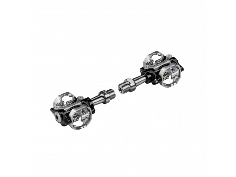 nášľapné pedále, systém FPC - FORCE Pedal Click kompatibilný s priemyselnými ložiskami SHIMANO SPD SM-SH51/ 56, Cr-Mo os, hliníkové telo pedálu nastaviteľné predpätie pružiny vrátane čiernych zarážok (náhradné zarážky kód 68285) hmotnosť 1 páru: 293 g, zarážky: 52 g balené na karteFORCE
