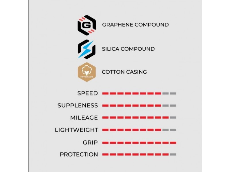 Corsa PRO CONTROL využíva najnovšie vyvinutú grafénovú a kremičitú zmes Vittoria a nový proces elektrickej vulkanizácie, ktorý umožňuje bezproblémové priloženie behúňa k plášťu.