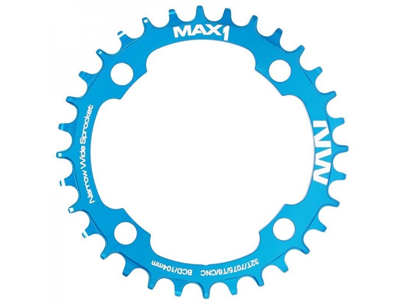 Převodník MAX1 Narrow Wide pro montáž na kliky s roztečí 104mm.Tvar zubů zajišťuje hladký chod a stabilitu řetězu s převody 1x10 nebo 1x11, převodník je tedy možné použít jak na 10-ti, ale i 11-ti rychlostní řazení.Specifikace:- CNC způsob zpracování- Elox povrchová úpravaVíce na: MAX1.CZDovozcem značky MAX1 do ČR je společnost Cyklomax, spol. s r.o.