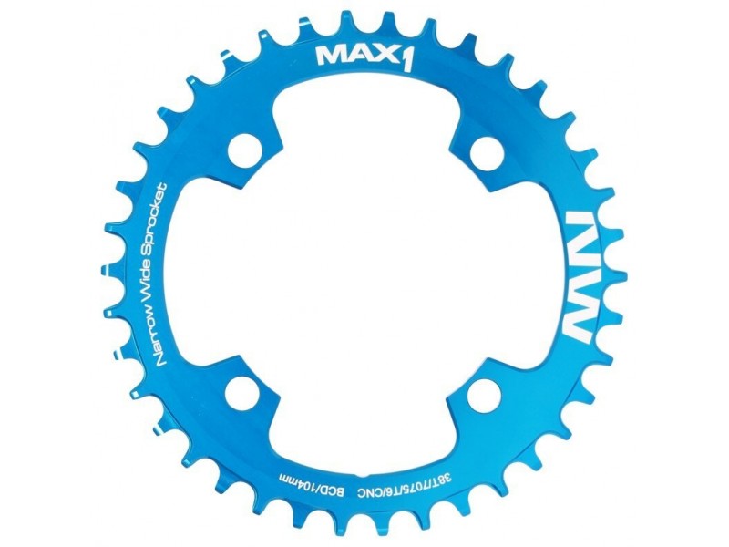Převodník MAX1 Narrow Wide pro montáž na kliky s roztečí 104mm.Tvar zubů zajišťuje hladký chod a stabilitu řetězu s převody 1x10 nebo 1x11, převodník je tedy možné použít jak na 10-ti, ale i 11-ti rychlostní řazení.Specifikace:- CNC způsob zpracování- Elox povrchová úpravaVíce na: MAX1.CZDovozcem značky MAX1 do ČR je společnost Cyklomax, spol. s r.o.