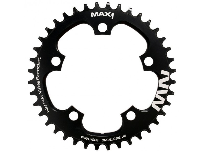 Převodník MAX1 Narrow Wide pro montáž na kliky s roztečí 110 mm.Tvar zubů zajišťuje hladký chod a stabilitu řetězu s převody 1x10 nebo 1x11, převodník je tedy možné použít jak na 10-ti, ale i 11-ti rychlostní řazení.Specifikace:- CNC způsob zpracování- Elox povrchová úpravaVíce na: MAX1.CZDovozcem značky MAX1 do ČR je společnost Cyklomax, spol. s r.o.