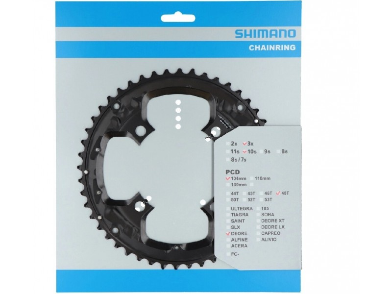 Y1WE98010 převodník pro kliky Deore FCT 521 s krytem, materiál AL pro 3x10s, černý, počet zubů: 48 z, rozteč 104 mm