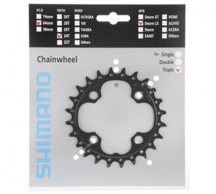 Y1LU24000prevodník FE 24 zubov,pre SLX M660 pre kľuky 3 x 10 srozteč 64 mm,čierny