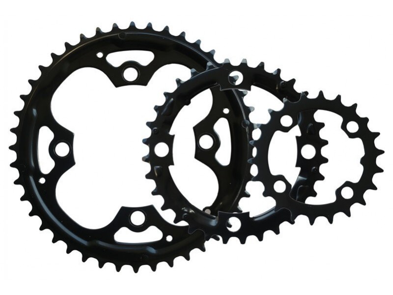 Náhradná sada oceľových prevodníkov pre 9 rýchlostné systémy a nižšie, čierna. Použiteľné pre kľuky napr. Shimano, Truvativ, atď.