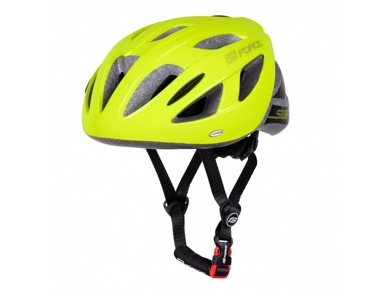 lepené, 17 otvorov veľkosť nastaviteľná pomocou kolieska polstrovanie pod bradou (ochrana pri zapínaní) veľkosť: XS-S 50-54 cm, S-M 54-58 cm, L-XL 57-61 cm hmotnosť: 257 g, 266 g, 287 g certifikát CE balené v krabici FORCE