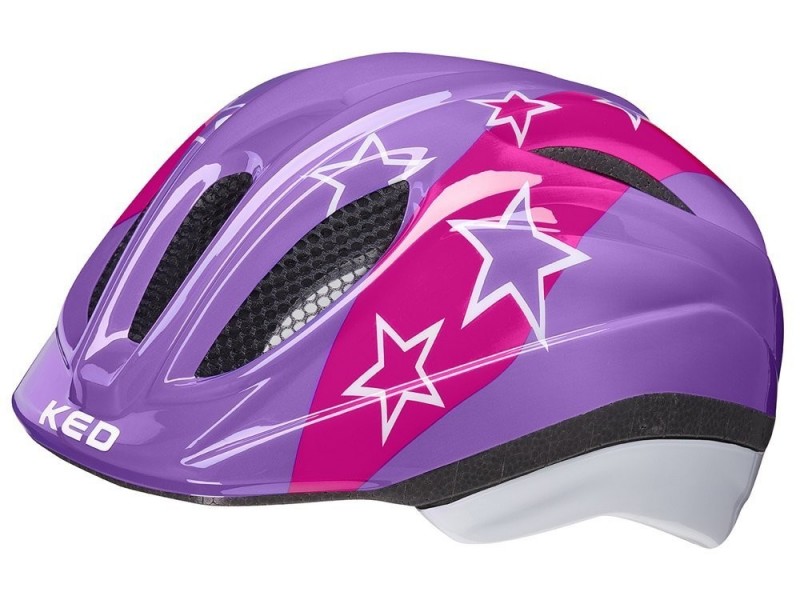13324095551 dětská přilba KED integrované blikačky v seřizovacím systému barva fialová motiv hvězdy
