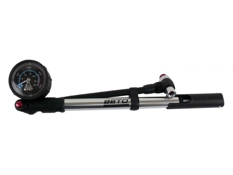 Pumpa BETO s manometrom pre fúkanie odpružených vidlíc, dĺžka 26 cm.