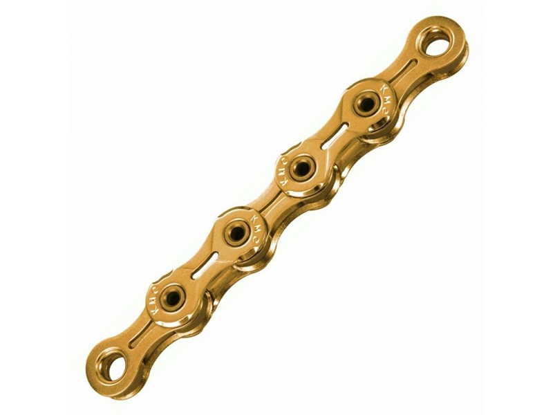 11-ti rychlostní řetěz KMC vhodný na řazení Campagnolo, 112 článků- hmotnost: 228g- včetně rychlospojky- duté nýty- odlehčené články- zlatý