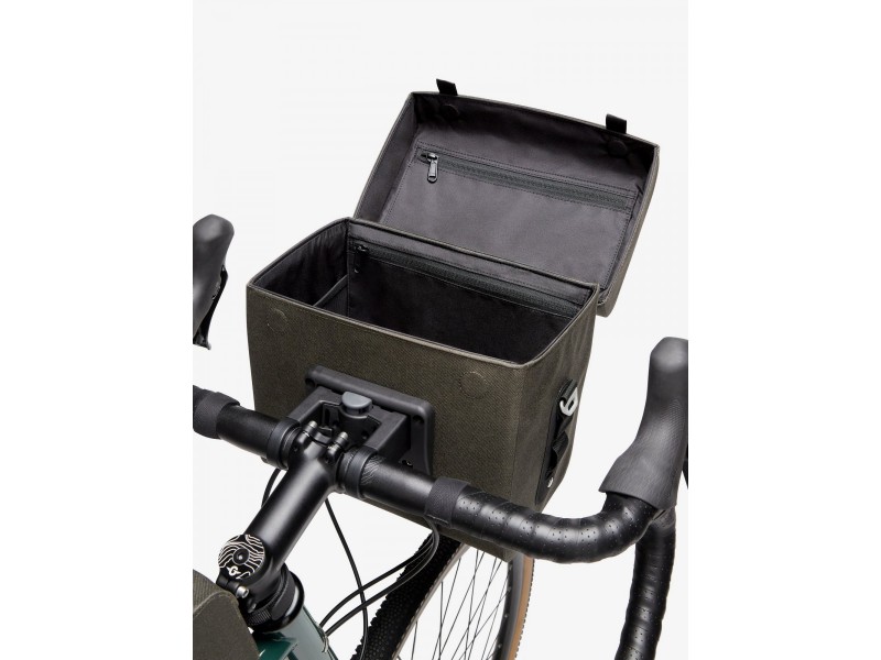 Riadidlová brašna Brooks Scape Handlebar Case je nevyhnutnou brašnou na bicykel pre každú cyklistickú cestu, nech už v meste pri každodennom dochádzaní alebo úteku z mesta na viacdenný výlet. 100% vodotesná a vďaka moderným materiálom a zváranej konštrukcii je táto brašna na bicykel pripravená na akékoľvek počasie. Vnútri nájdete dve strečové vrecká zo sieťoviny a dve vrecká na zips, ktoré pomôžu usporiadať drobnosti, zatiaľčo magnetický uzáver umožňuje rýchly prístup k telefónu alebo mape. Brašna sa na riadidlá pripája pomocou systému uchytenia KlickFix a rýchlo sa dokáže pomocou odnímateľného popruhu (nie je súčasťou) premeniť na brašnu cez rameno. Praktická brašna pre uloženie všetkého potrebného bez toho, aby ste museli zastavovať a zložito rozbaľovať brašnu.