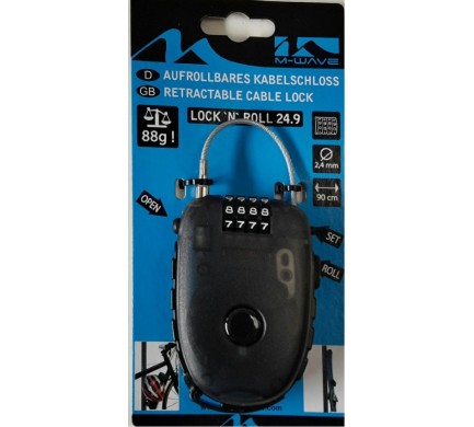 Zvinovací zámok so štvormiestnym kódomdĺžka: 90 cmsila lanka: 2,4 mmhmotnosť: 88 g