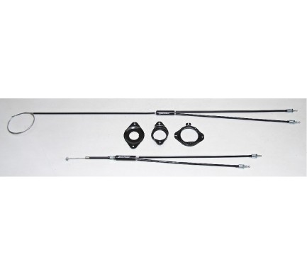 Sada lanek a bovdenů zadní brzdy pro kola "FREE" včetně twisteru, délky bowdenů, páka-rozdvojka 65mm rozdvojka-twister 270 a 300mm, twister-spodní rozdvojka 2x330mm, spodní rozdvojka-zadní brzda 350mm, délka lanka za bovdenem k zadní brzdě 520mm, twister Fe pro vidlici průměr sloupku 1", černý