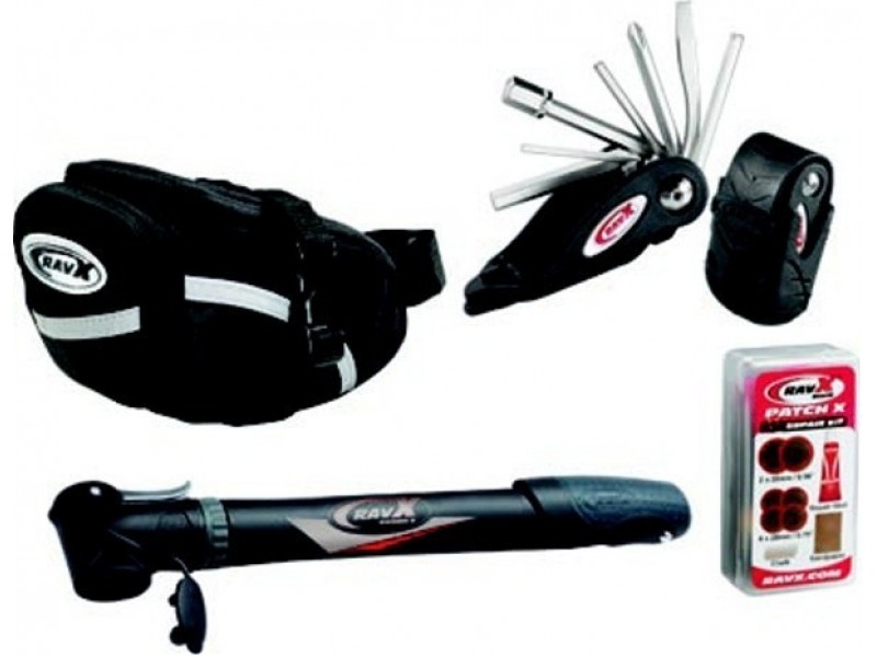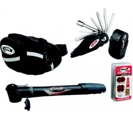 Sada RAV-X,pumpa plastová,taška pod sedlo,nářadí 11funkcí,lepení