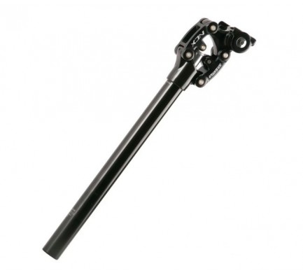AL odpružená sedlovka SUNTOUR s paralelogramem, AL zámek, průměr 31,6mm, délka 400mm, černá matná. zdvih 50mm, vnitřní vinutá pružina, nastavení předpětí, nerezová pouzdra, hmotnost 880g