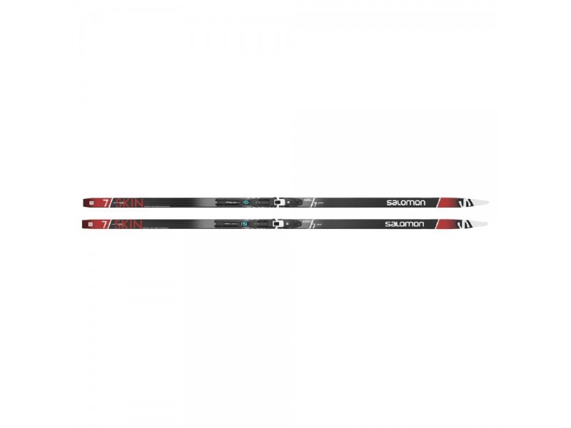 41375000190 set běžek Salomon Aero 7 eSKIN a namontovaného vázání Salomon Prolink Shift Pro Classic lyže styl classic skluznice G3 base jádro Densolite 2000 grip technologie eSkinGrip+, v odrazové části samolepící umělá tulení kůže napuštěné základovým voskem a opatřené krycí folií broušené šířka 48/46/44/46mm délka 190cm vázání Salomon Prolink Shift Pro Classic jedna hrazda dvě drážky (NNN,Turnamic) posuvné na desce PSP, 5 poloh flexe 85 manuální ovládání