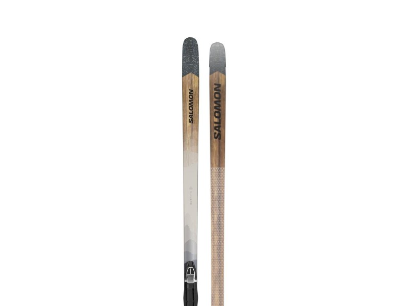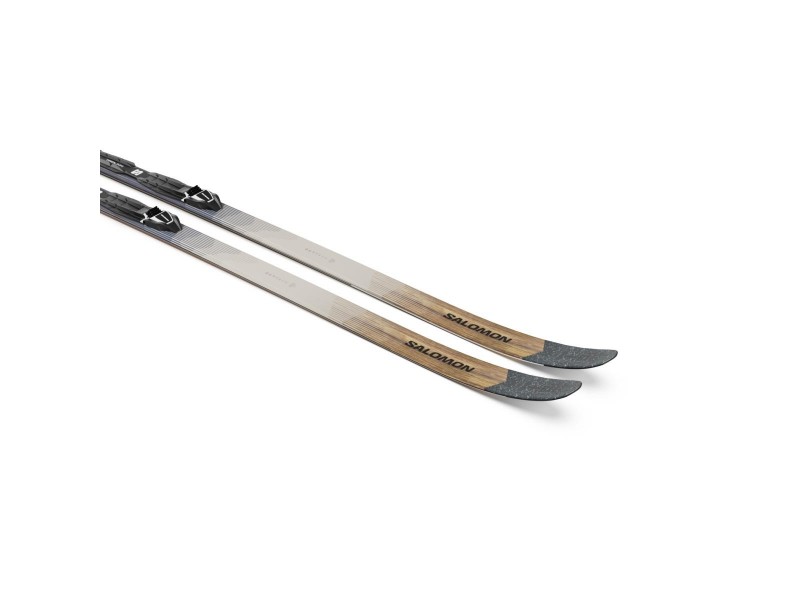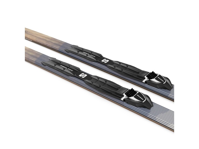 479335PM turistické běžky mimo stopu včetně namontovaného vázání Prolink Access ocelové hrany na 3/4 délky dřevěné jádro skluznice G1 performance broušení šířka 65/55/60mm vázání: turistické vázání Salomon Prolink Access CL classic styl pro podešev prolink (dvě drážky), (kompatibilní s NNN profilem) manuální ovládání