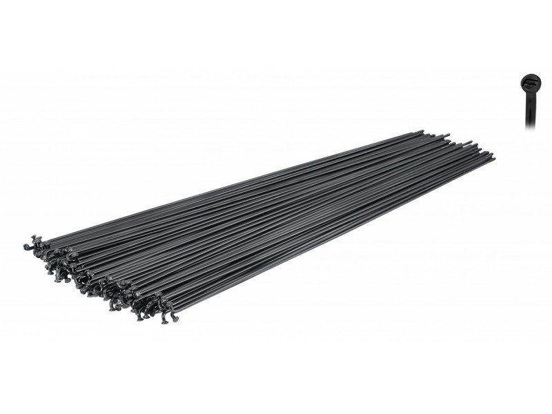 nerezová oceľ čierna, priemer 2 mm, dĺžka 292 mm materiál: Sandvik Duplex - vysokopevnostná a únavovo odolná nerezová oceľ hmotnosť: (pri dĺžke 260 mm) 6,5 g mechanická pevnosť: 3055 N norma: ČSN EN ISO 4210-7 predaj a balenie po 100 ks, cena je za 1 ks balený vo vreci