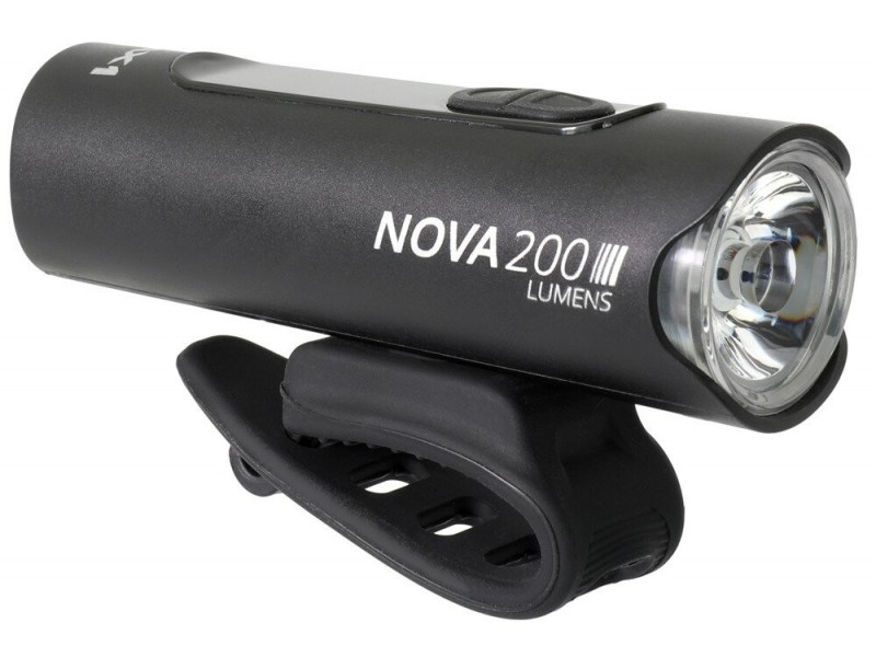 Extra výkonné dobíjecí přední světlo MAX1 Nova 200 s vysokým světelným výkonem 200 lumenů. Díky pružnému gumovému popruhu světlo snadno přiděláte na každá řidítka.