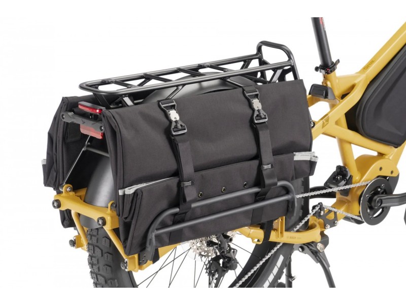 Rolovací konstrukce pro tři režimy - režim "Bucket" pro velmi objemný náklad, režim "Pannier" pro převoz věcí v suchu a bez nečistot a režim "FlatFold", když se nepoužívá a je sbalená.