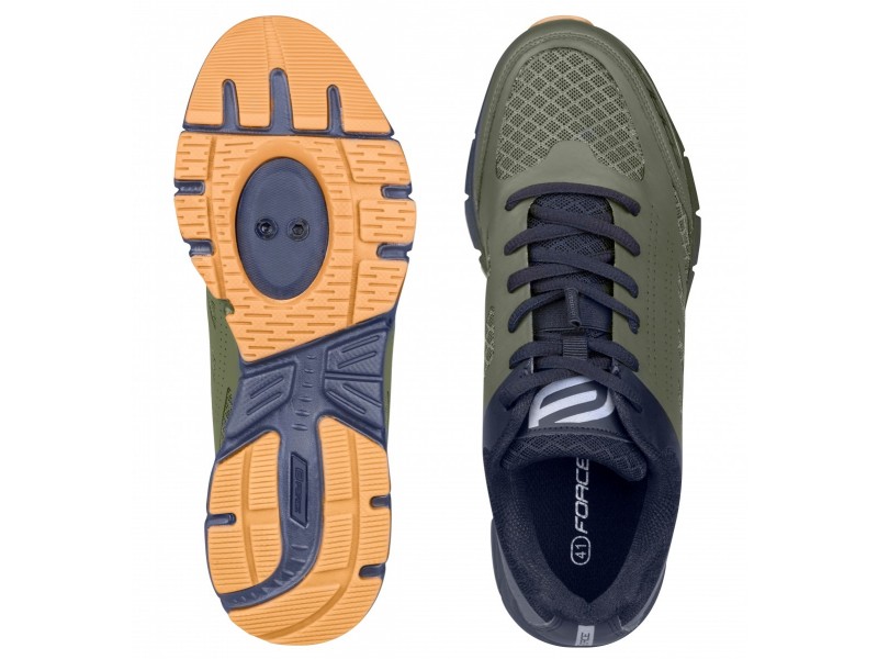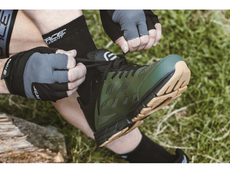 zvršok: syntetická koža a textilná sieťovina podrážka: EVA hmotnosť: 365 g (1/2 páru veľkosť 42) moderný dizajn zosilnená špička anatomická stielka vetracie otvory pre vynikajúcu priedušnosť kompatibilný s SPD (gumový chránič topánky sa musí odstrániť) gumový chránič topánky pre dlhú životnosť šnurovanie reflexný prvok na päte index tuhosti: 5 zarážky nie sú súčasťou balenia veľkosť zodpovedá štandardu civilnej obuvi balené v krabici FORCE