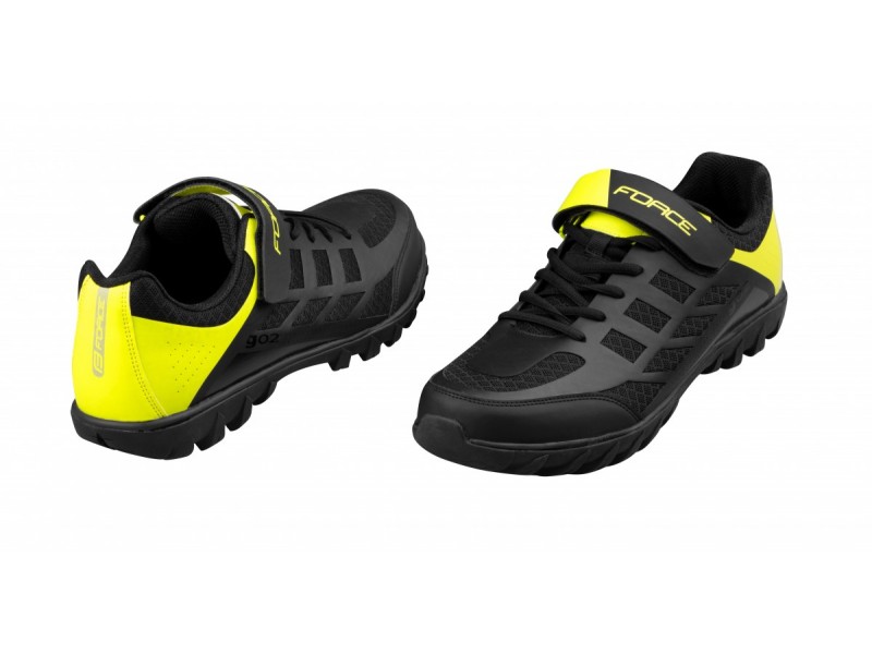 zvršok: syntetická koža a textilná sieťovina podrážka: guma index tuhosti: 6 zosilnená špička anatomická stielka vetracie otvory pre vynikajúcu priedušnosť kompatibilné s SPD (gumový chránič topánky sa musí odstrániť) gumový chránič topánky pre dlhú životnosť šnurovací zvršok zapínanie na suchý zips zarážky nie sú súčasťou balenia veľkosť zodpovedá štandardu pre civilnú obuv balené v krabici FORCE