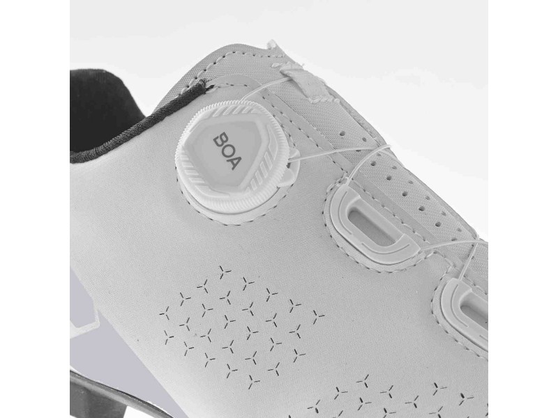 3887-004 G.TRAIL+ LADY je dámská MTB cyklistická obuv vyvinutá tak, aby odpovídala specifické anatomii ženské nohy. Má elegantnější linie a poskytuje jak výkon, tak pohodlí. Mikrovláknový materiál je perforovaný, aby optimalizoval prodyšnost a zlepšil větrání, takže vaše nohy zůstanou během jízdy v suchu a chladu. Uvnitř je bota spojena se síťovinou, která poskytuje trvalou oporu nohy a zvyšuje stabilitu. Systém zapínání, vybavený mikronastavitelným systémem BOA L6, zajišťuje rovnoměrné a bezpečné zapínání, bez jakýchkoli tlakových bodů. Jazyk TONGUE COMFORT FIT obsahuje high-tech tlumicí vrstvu pro větší pohodlí a prodyšnost. Integrovaná protiskluzová patní část zvyšuje stabilitu nohy a kontrolu nad ní pro lepší zážitek z jízdy. Vložky EPS TRANSPIRANT INSOLE, která se vyznačuje anatomickou podporou pro pohodlí a efektivitu šlapání. Váha: 297 g (velikost 38) Made in Italy GAERNE MTB 2DENSITY SOLE 7.0 V centru pro vývoj a výzkum Gaerne se zrodila nová podrážka, vyvinuta výhradně pro MTB. Strukturu podrážky tvoří nylon a skelné vlákno, které ji činí odolnou, lehkou a tenkou. Pryžové dílce na podrážce byly navrženy tak, aby zaručily maximální přilnavost, stabilitu a výbornou trakci na každém terénu.